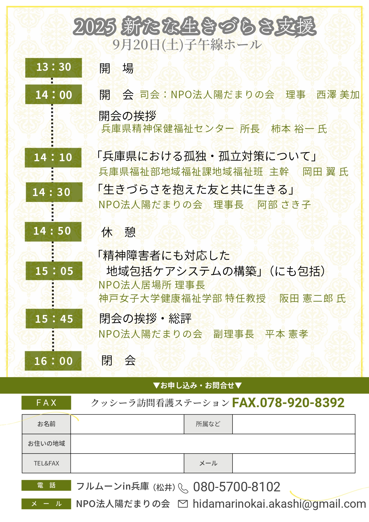 メール: hidamarinokai.akashi@gmail.com