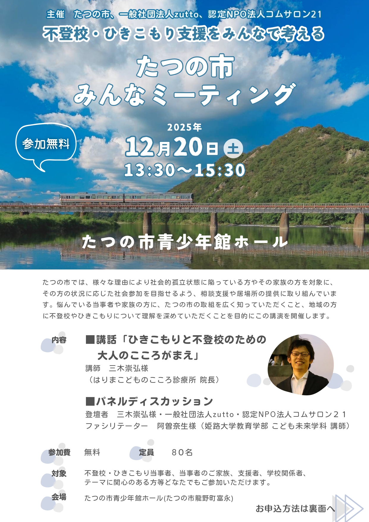 たつの市、一般社団法人zutto、認定NPO法人コムサロン21