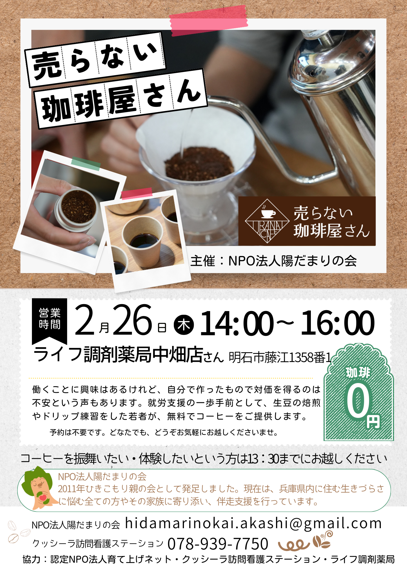| 活動時間 | 不定期:13:00~16:00 |